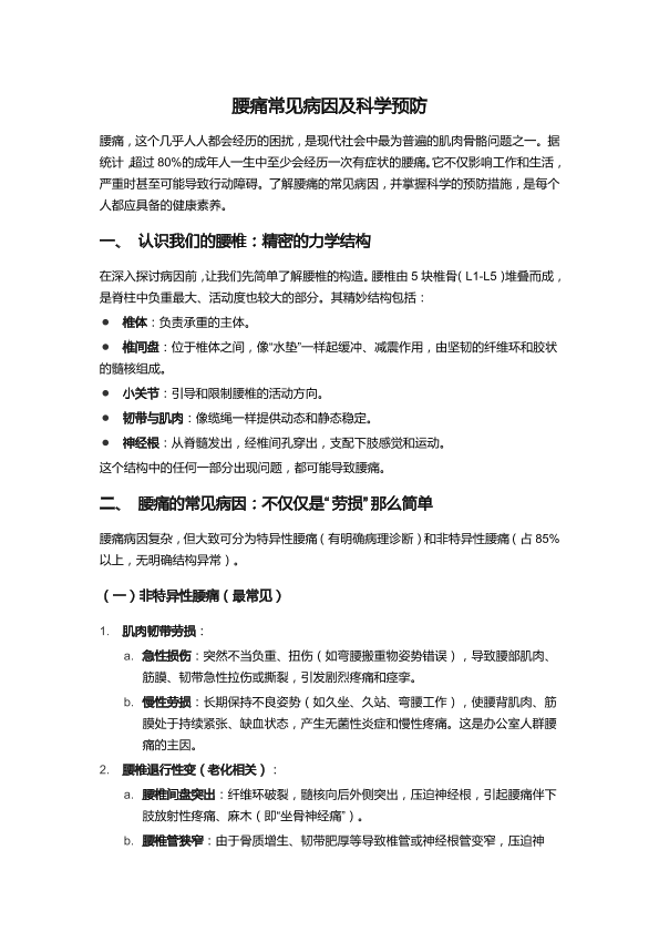 腰痛常见的病因及科学预防