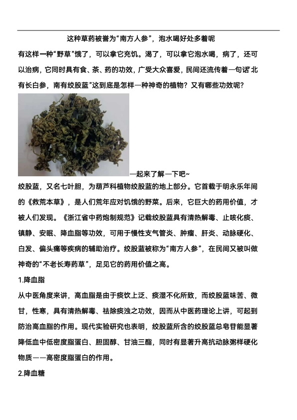 这种草药被誉为南方人参,泡水喝好处多着呢