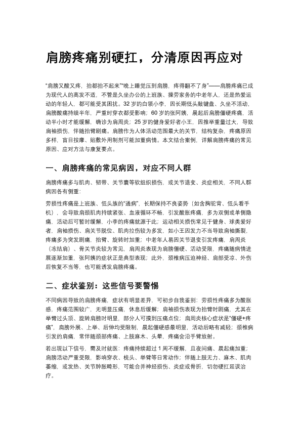 肩膀疼痛别硬扛,分清原因再应对