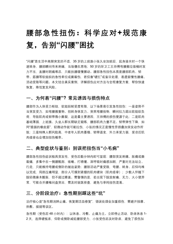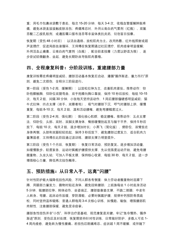 腰部急性扭伤:科学应对+规范康复,告别“闪腰”困扰