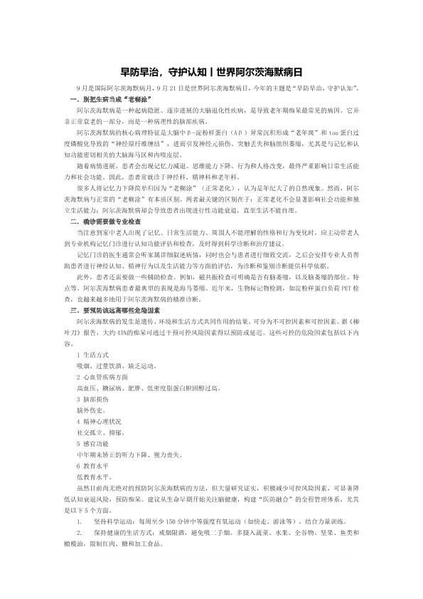 早防早治,守护认知/世界阿尔茨海默病健康科普