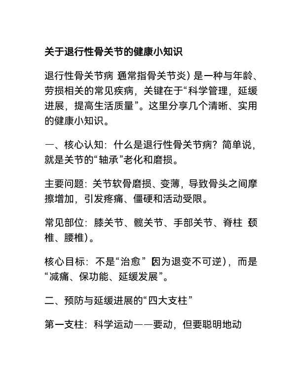 关于退行性骨关节炎健康小知识