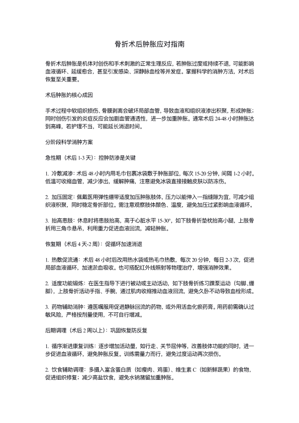 骨折术后肿胀应对指南