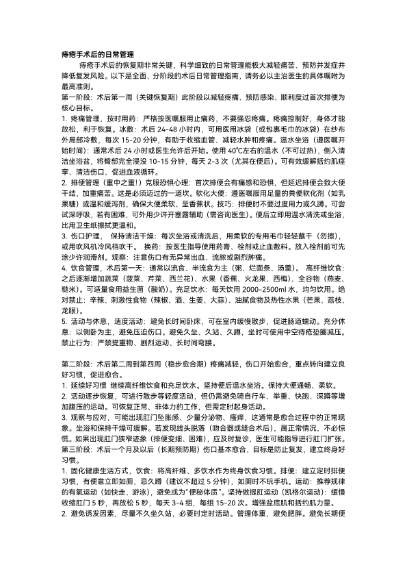 痔疮术后的日常管理