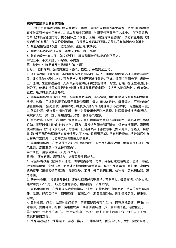 髋关节术后的日常管理