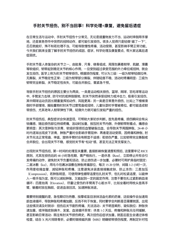 手肘关节扭伤,别不当回事!科学处理+康复,避免留后遗症