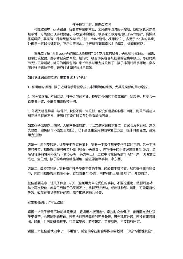 孩子摔到手肘,警惕牵拉肘