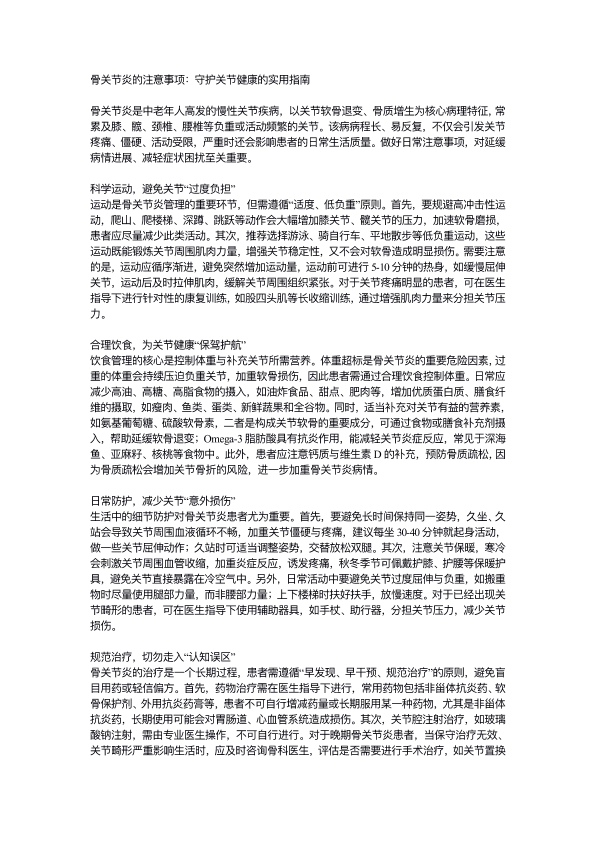 ⻣关节炎的注意事项: 守护关节健康的实⽤指南