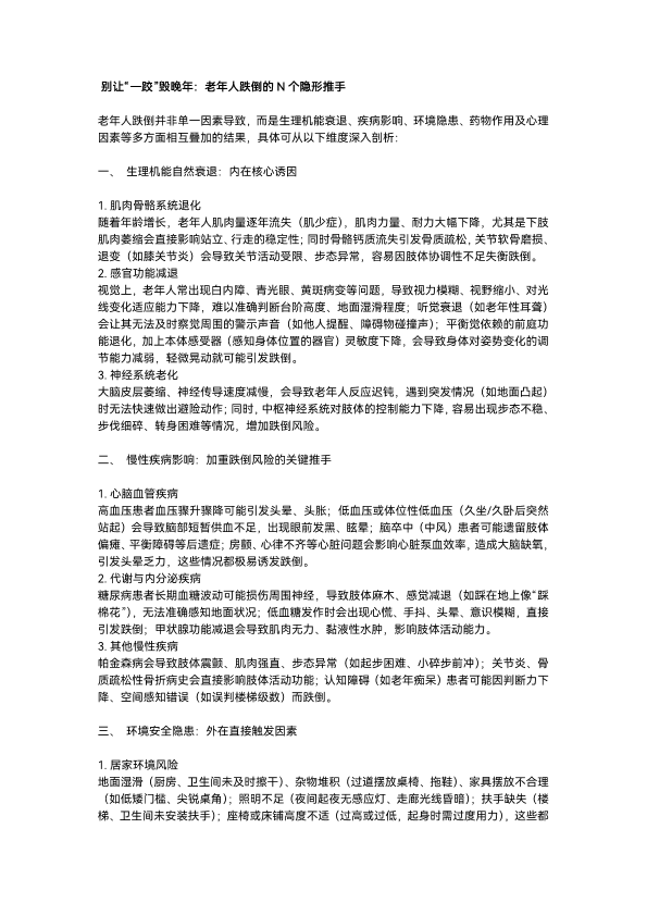 别让一跤毁晚年?老年人跌倒的 N 个隐形推手