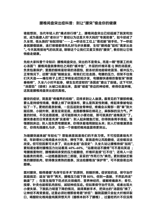 别让“腰突”偷走你的健康