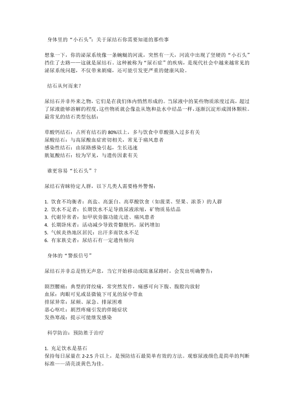 身体里的“小石头”:关于尿结石你需要知道的那些事