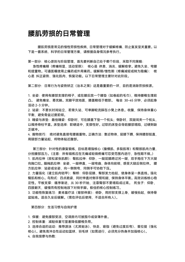 腰肌劳损的日常管理