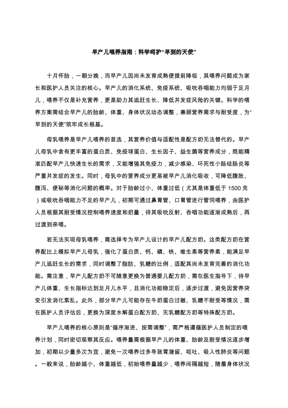 早产儿喂养指南:科学呵护“早到的天使”