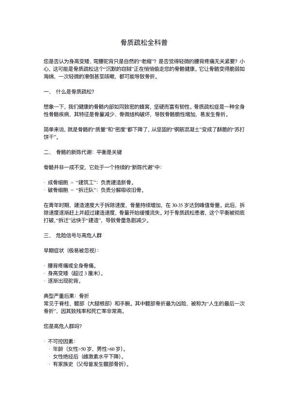 骨质疏松全科普