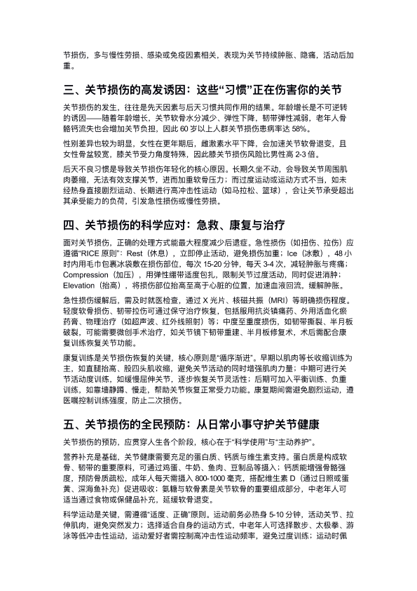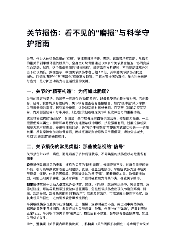 关节损伤:看不⻅的“磨损”与科学守 护指南