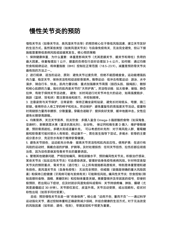 慢性关节炎的预防
