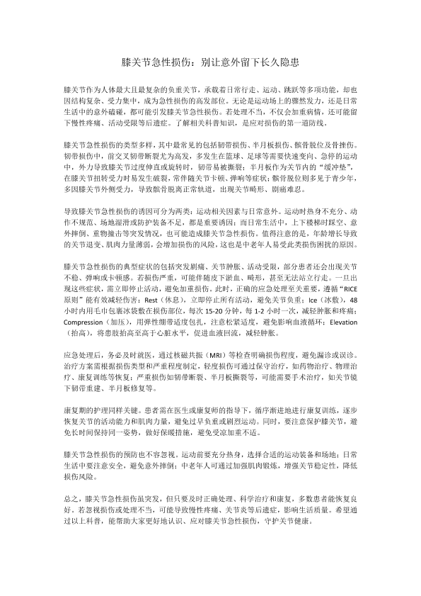 膝关节急性损伤:别让意外留下长久隐患