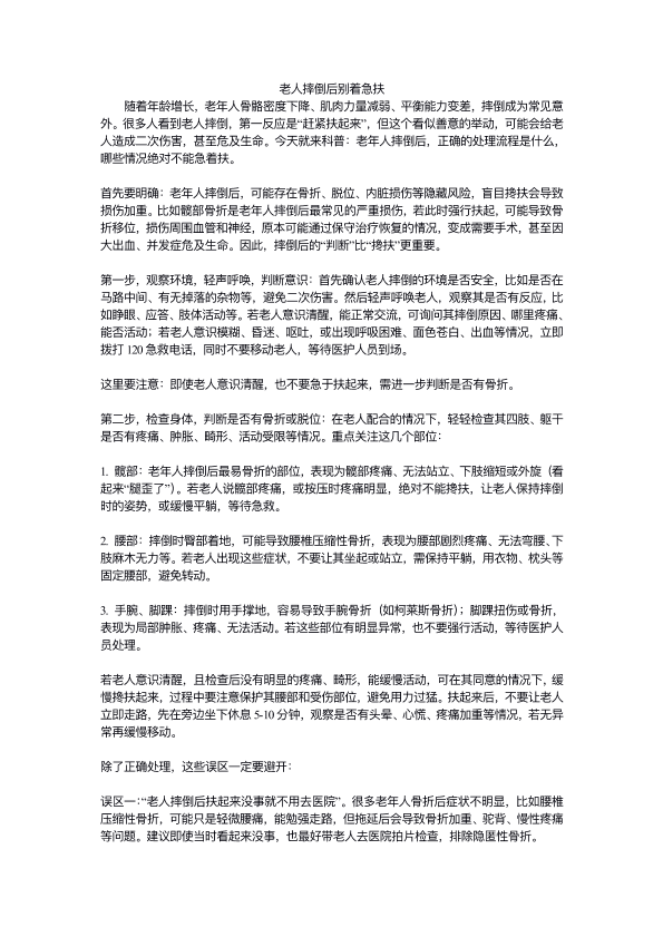 老人摔倒后别着急扶