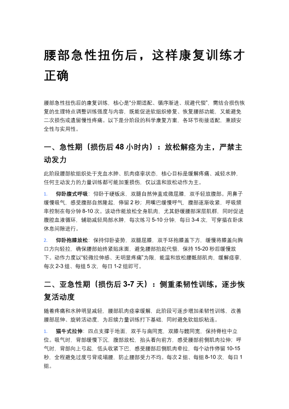 腰部急性扭伤后,这样康复训练才正确