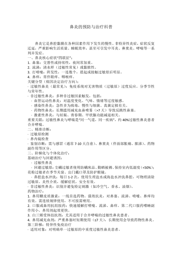鼻炎的预防与治疗科普