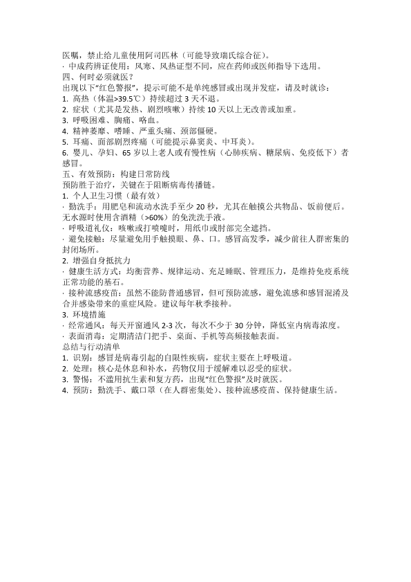 感冒的预防与治疗科普
