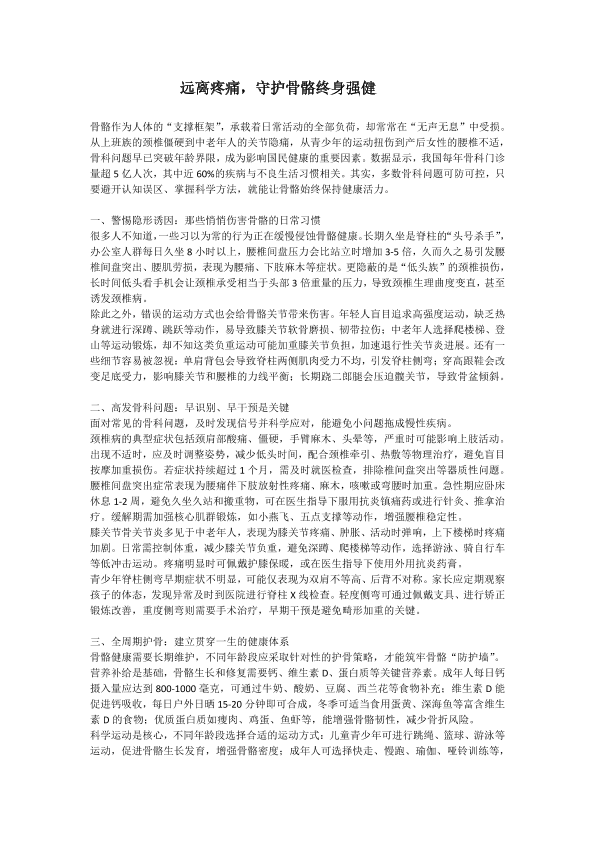 远离疼痛,守护骨骼终身强健