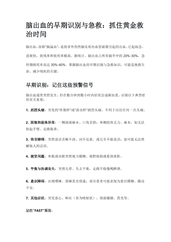 脑出血的早期识别与急救:抓住黄金救治时间