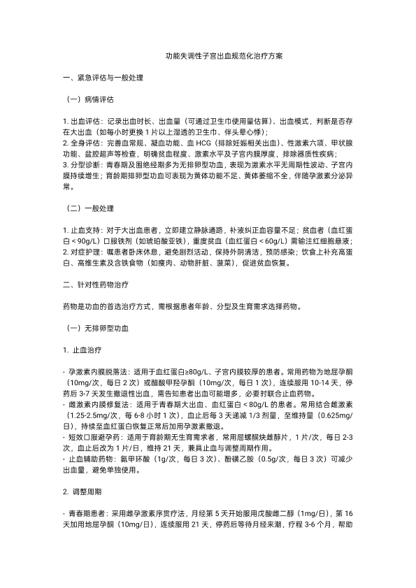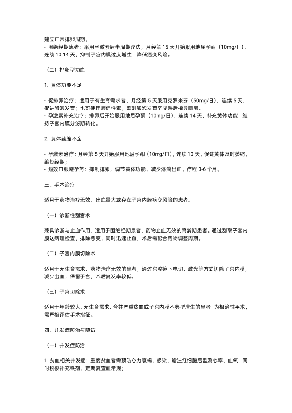 功能性子宫出血的治疗方案
