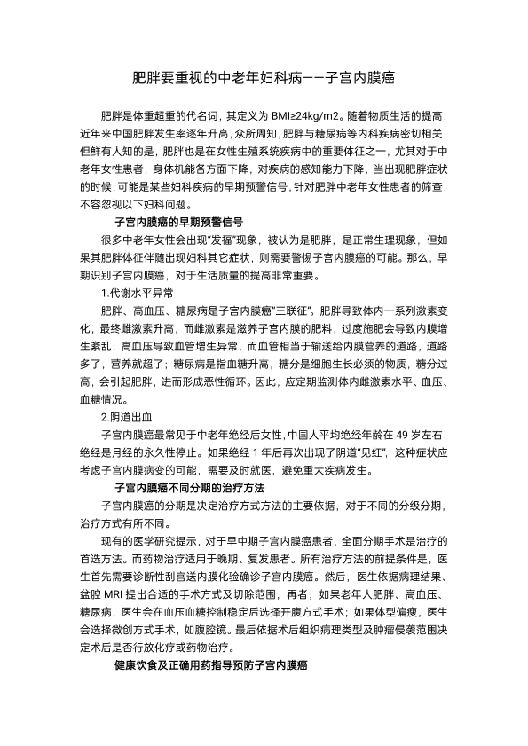 肥胖,要重视的妇科疾病