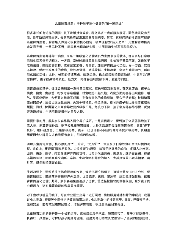 儿童脾胃虚弱:守护孩子消化健康的“第一道防线”