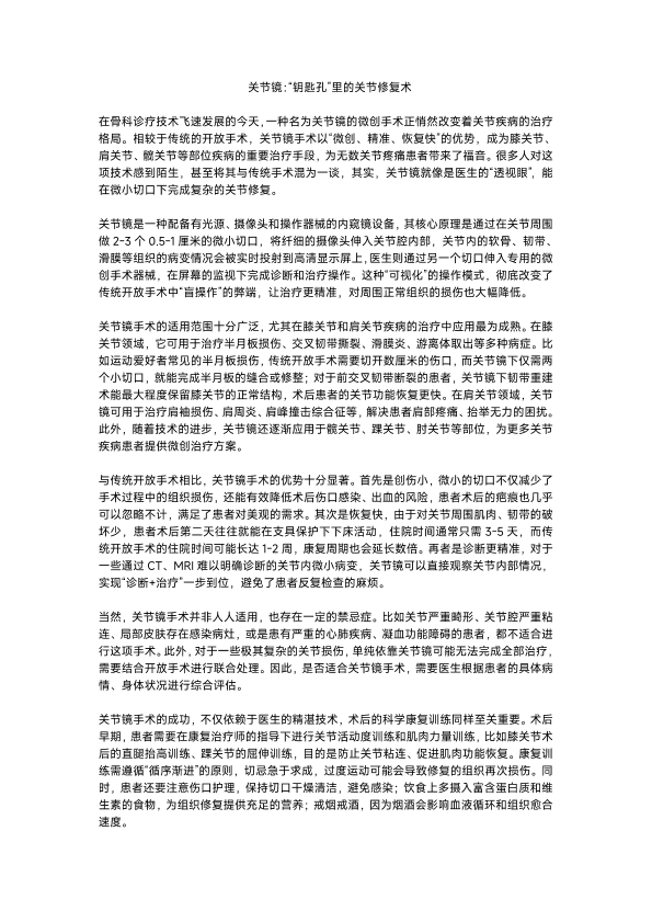 关节镜:“钥匙孔”里的关节修复术