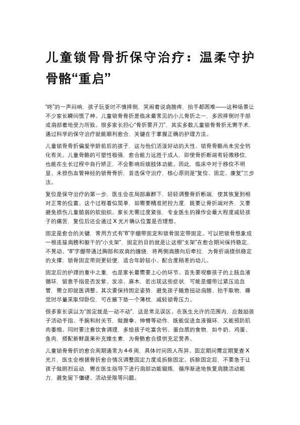 儿童锁骨骨折保守治疗:温柔守护骨骼“重启”