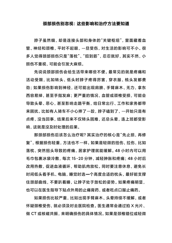 颈部损伤别忽视:这些影响和治疗方法要知道