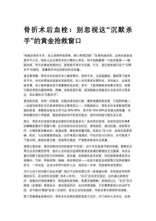 骨折术后血栓:别忽视这沉默杀手的黄金抢救窗口