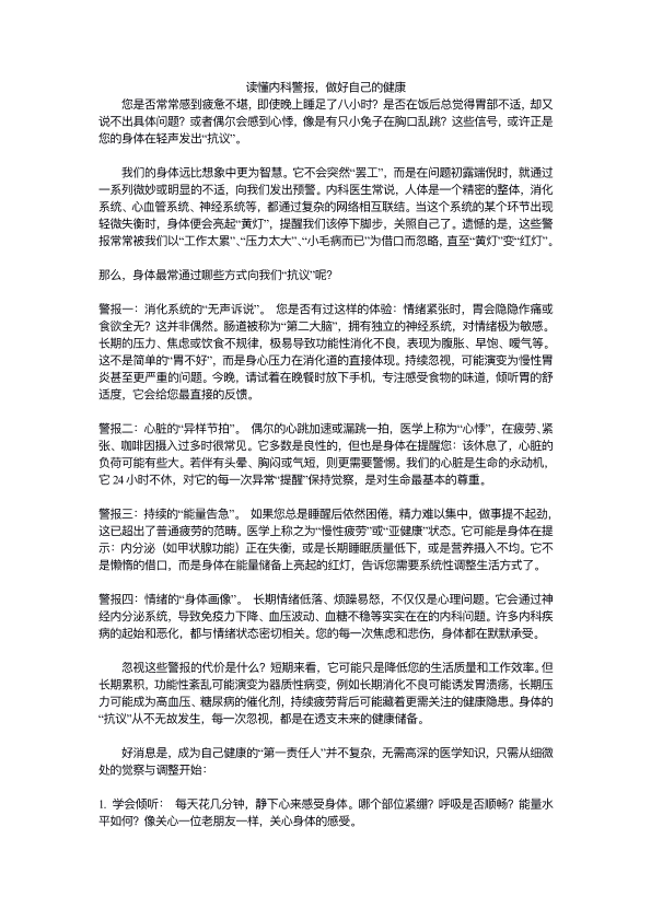 读懂内科警报,做好自己的健康