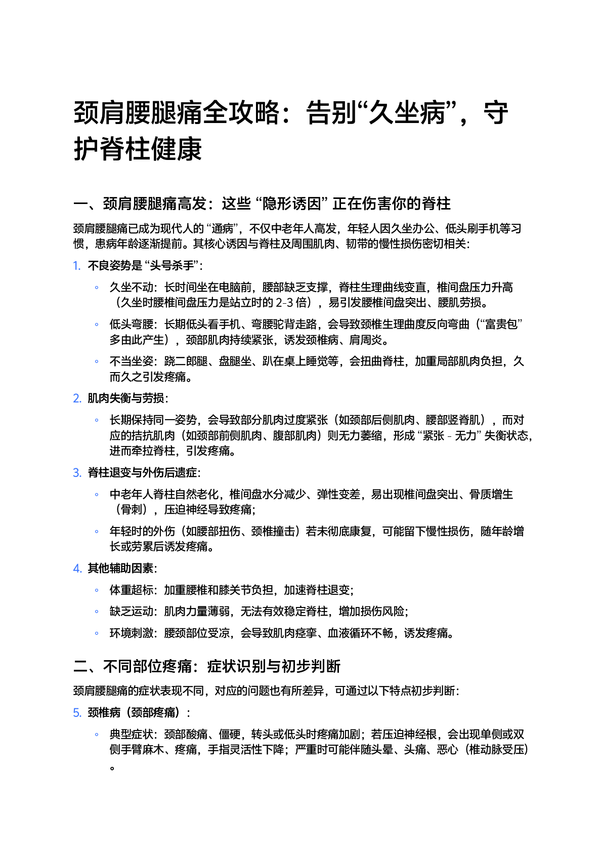 肩腰痛全攻略:告别“久坐病”,守腿颈护脊柱健康