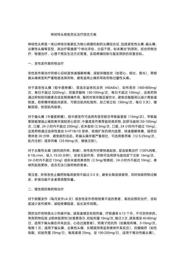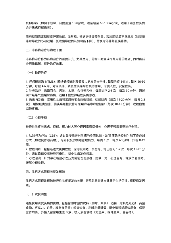 神经性头疼的治疗