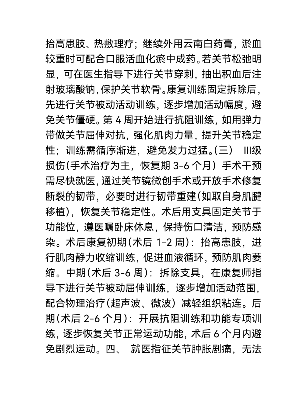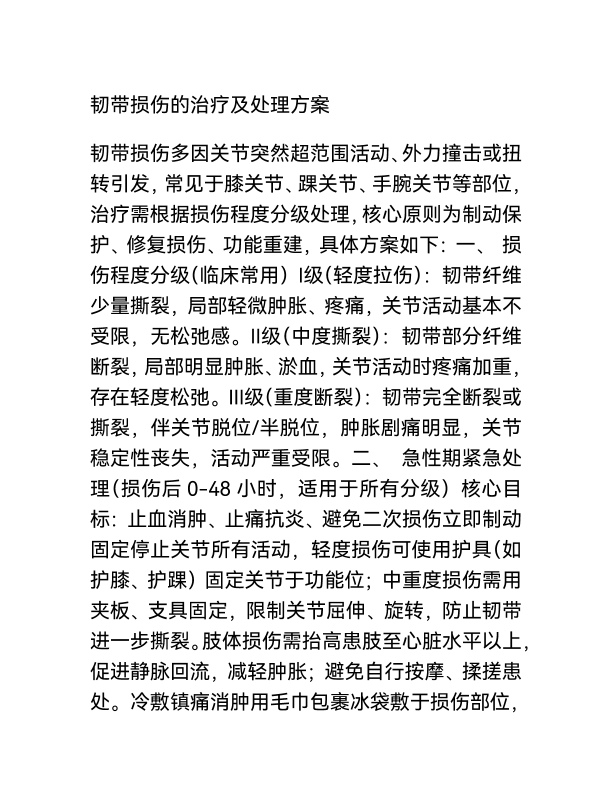 韧带损伤处理及治疗方案