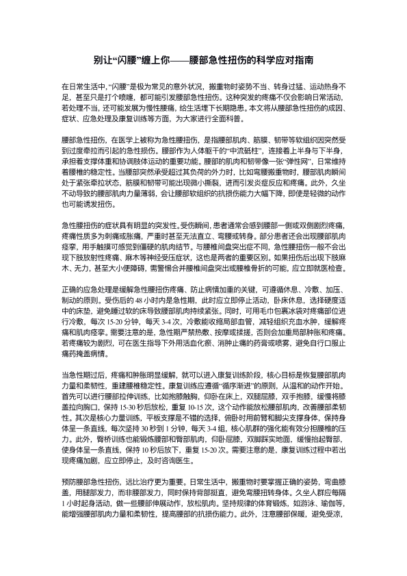 别让“闪腰”缠上你——腰部急性扭伤的科学应对指南