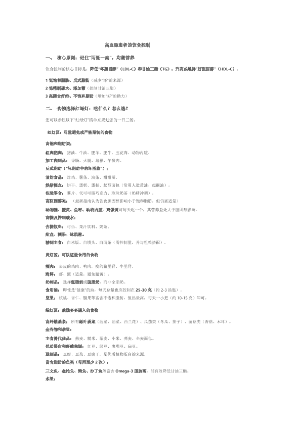 高血脂患者的饮食控制